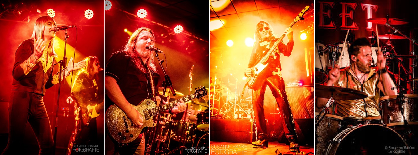 Die Band aus dem angrenzenden Ruhrpott ist wirklich das Maß aller Dinge, wenn es um die britische Band SWEET geht, die uns vor über 50 Jahren zeitlose Hits auftischten und mit energiegeladenen Auftritten Rockgeschichte schrieben. Und wir, die mittlerweile ergrauten 50er und 60er sollten mehr als dankbar sein, dass es diese einmalige Tributeband gibt, die es sich zur Aufgabe gemacht hat, den glitzernden Glamrock weiterleben zu lassen.