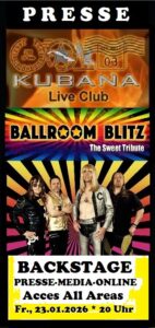 Was war das denn bitteschön? Gestern Abend trat die Sweet-Tributeband BALLROOM BLITZ zum 8. Mal in Folge im legendären Kubana-Eventclub in Siegburg auf und trat eindrucksvoll den Beweis an, dass sie nicht von diesem